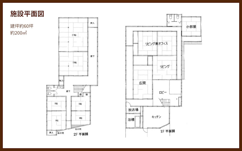 建坪60坪(約200㎡)の広々使える大型古民家コテージです。最大38名が宿泊可能です。