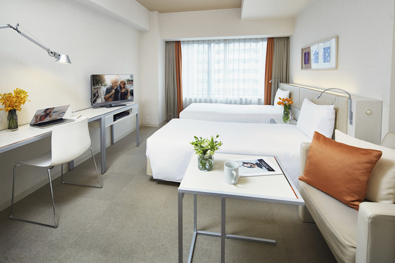 ツインとダブルの2種のベッドタイプのお部屋をご用意。洗面エリアと空間を分ける半透明の間仕切りがあったり、ソファをエキストラベッドとして利用できるお部屋タイプもあるため、複数人でのご宿泊の場合でも快適にお過ごしいただけるよう配慮した、機能的なレイアウトになっております。