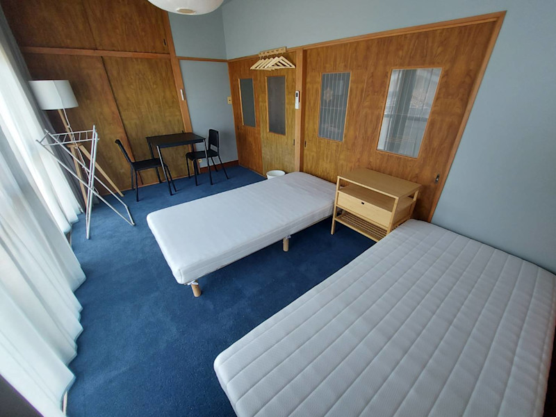 2階は寝室で、和室が2部屋、洋室が1部屋です。各部屋にはエアコンを完備しています。見た目は少し古めの民家ですが、トイレやお風呂もすべて新しいものに入れ替えているため、女性の方でも安心してご利用いただけます。