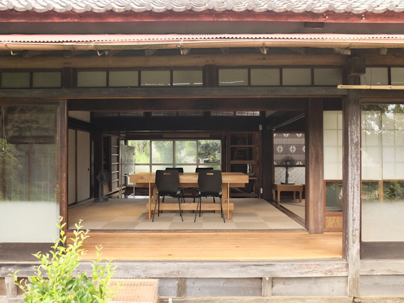 自分の時間をじっくり味わう作業空間。建物は築90年超、縁側の前には庭が広がり気づけば里の時間をひとり占めしたような感覚に。 Wi-fiやキッチンもあり、会議やリモートワークや創作活動、また、イベントや研修の開催場所などにも使うことができます。(要事前予約)