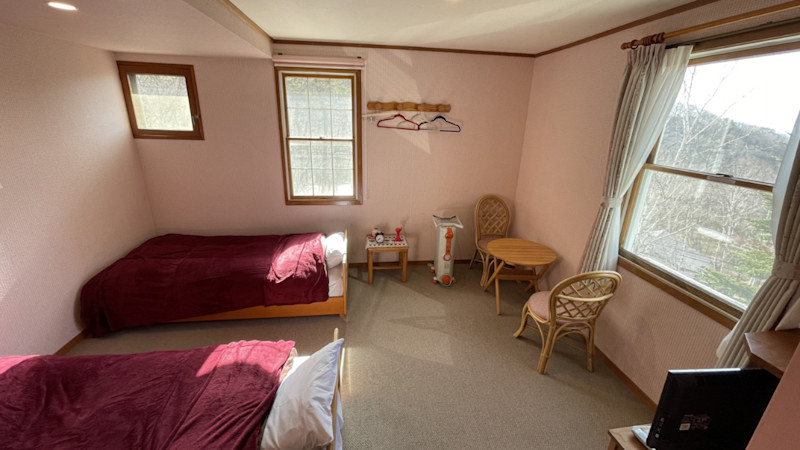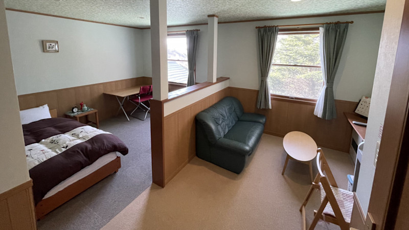 元々2人部屋なので充分な広さがあります。広めのお仕事机もある「丁度よい」感じのお部屋です。