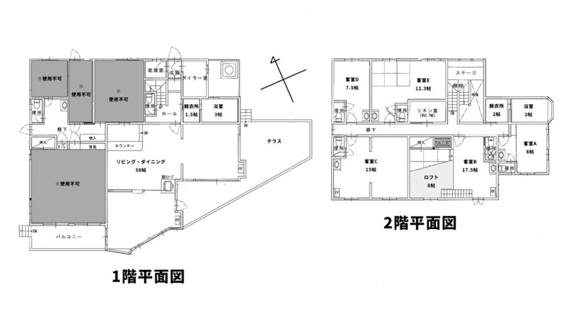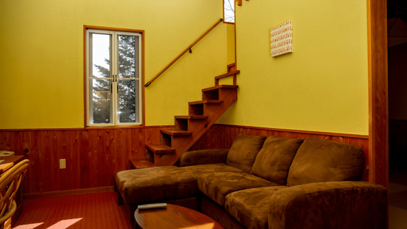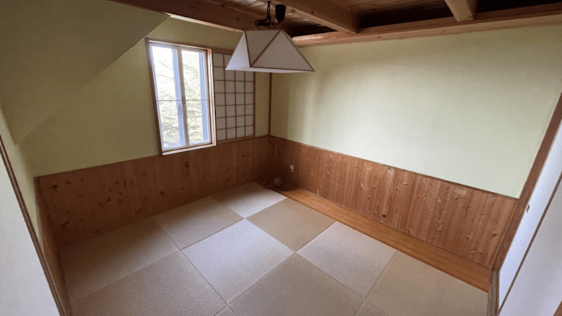 1階部分にはリビングと和室、2階部分に板敷のスペースがあります。最大6名程度でご利用いただけます。窓からは南アルプスの絶景がご覧いただけます。