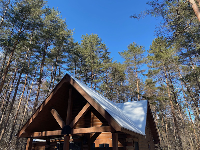 樹々に囲まれひっそり森にたたずむ森のログハウス。