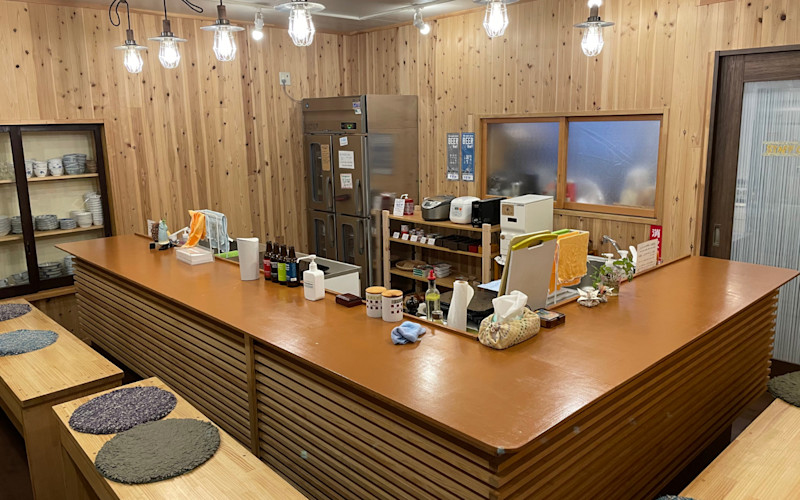 元々は温泉旅館だったので通常の古い民宿みたいな宿だったので、現代風にリノベーションして、それから形態もゲストハウスにしました。ゲストハウスなので、自分たちで自炊できるキッチンや共用スペースをリノベーションする時に準備しました。